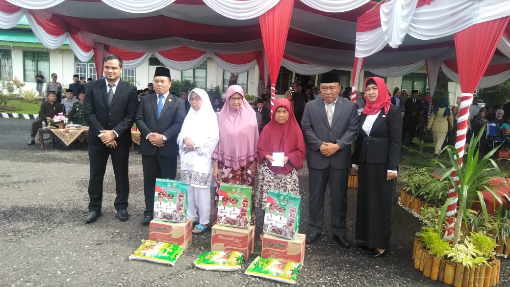 Usai melakukan upacara Sekda PALI memberikan bantuan sembako dan uang tunai kepada Janda Veteran yang ada di Bumi Serepat Sarasan.