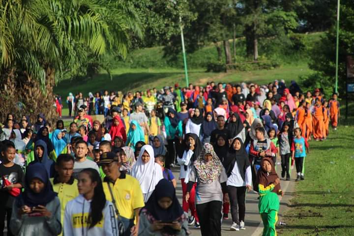 PALI - Dalam rangka memperingati Hari ulang tahun Kabupaten Pali yang ke 6. Ribuan Masyarakat Kabupeten Penukal Abab Lematang Ilir (PALI) ikuti jalan santai.