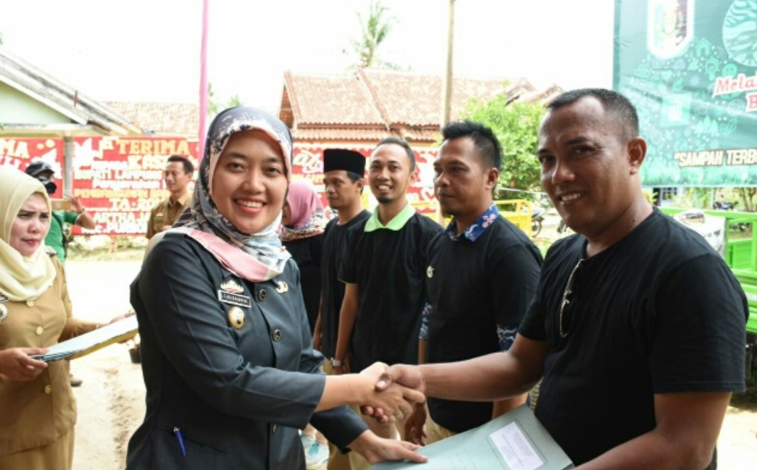 RUBRIK, PURBOLINGGO – Bupati Lampung Timur Chusnunia Chalim, menyerahkan hibah bangunan 5 unit Bank Sampah dan hibah 11 unit sepeda motor sampah yang dilaksanakan di Bank Sampah Artha Jaya Kesuma, Desa Tanjung Kesuma, Kecamatan Purbolinggo, Senin (31/12/2018).