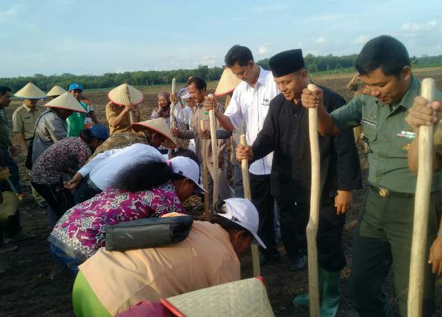 Cetak lahan sawah baru ditandai dengan acara tanam perdana yang dilakukan oleh Bupati lampung Tengah Mustafa bersama Kodim 0411/Lampung tengah, Senin (5/9/2016).