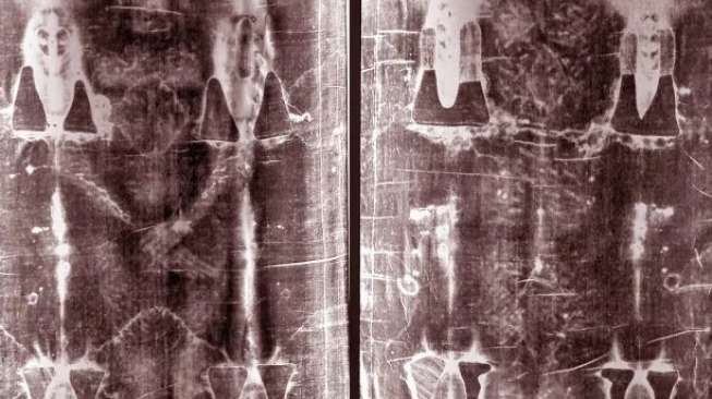Kain Kafan Turin, yang berukuran sekitar tiga kali satu meter, berisi gambar seseorang yang samar-samar. Diduga merupakan kain kafan penguburan Yesus.