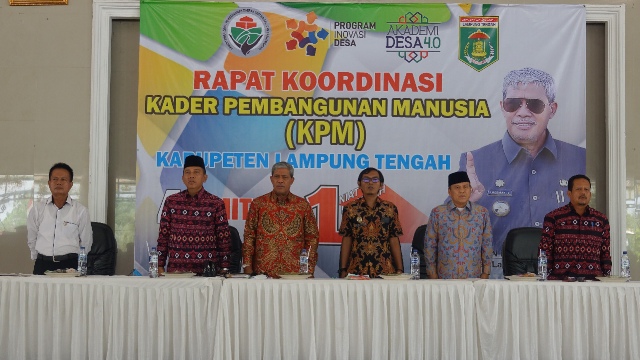 Rakor KPM se Kabupaten Lampung Tengah, dihadiri oleh Kadis Kominfo Lamteng Drs.Sardjito, Kadis PMK Drs Firdaus Roka’in M.M , Plt Kadis Kesehatan Edy Sunarko, unsur forkopimda ,Camat dan Kepala Kampung se kabupaten Lampung Tengah.