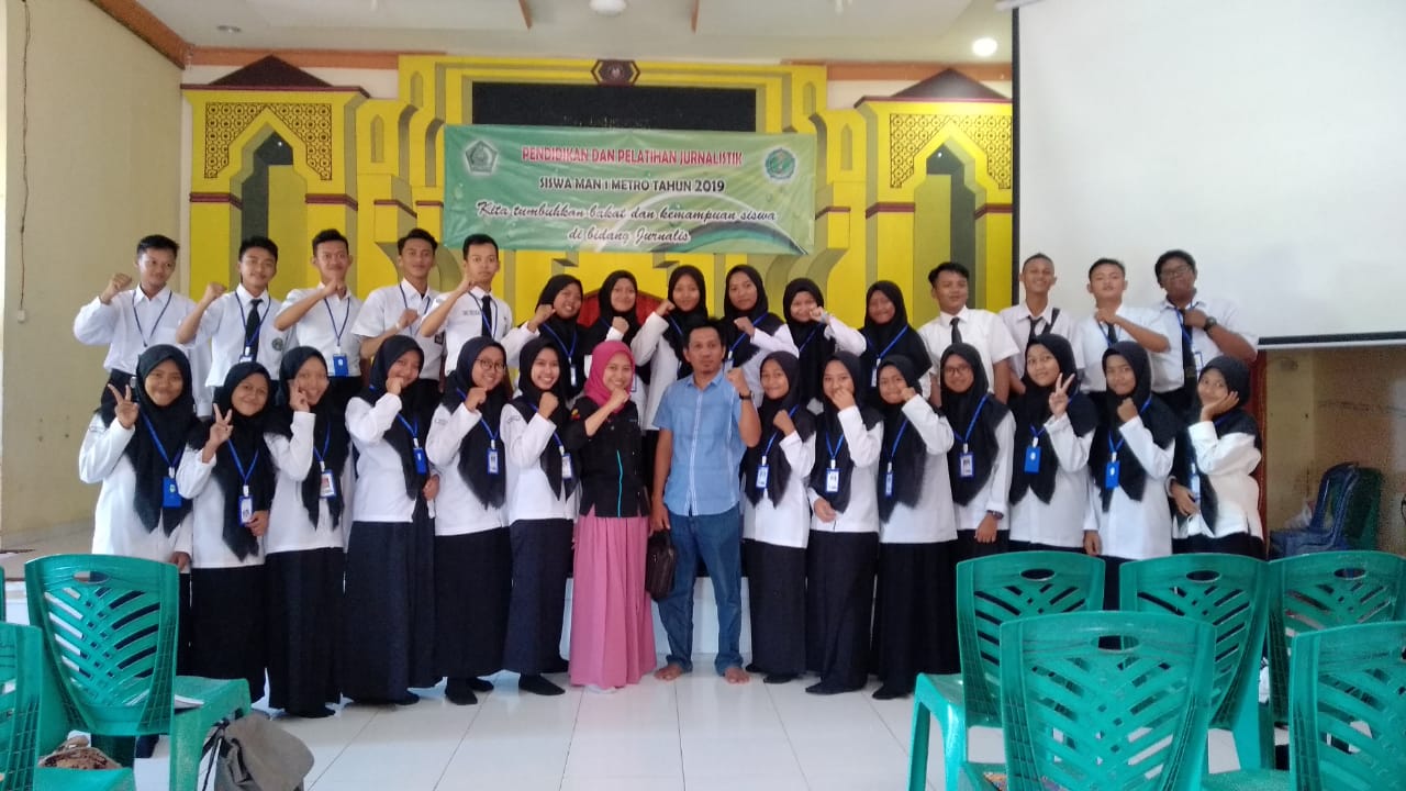 METRO – Sebanyak 33 Murid Sekolah Madrasah Aliyah Negeri (MAN ) 01 Kota Metro mengikuti workshop pendidikan dan latihan ilmu jurnalistik di Aula Kampus II, Sabtu (23/02/2019) pagi.