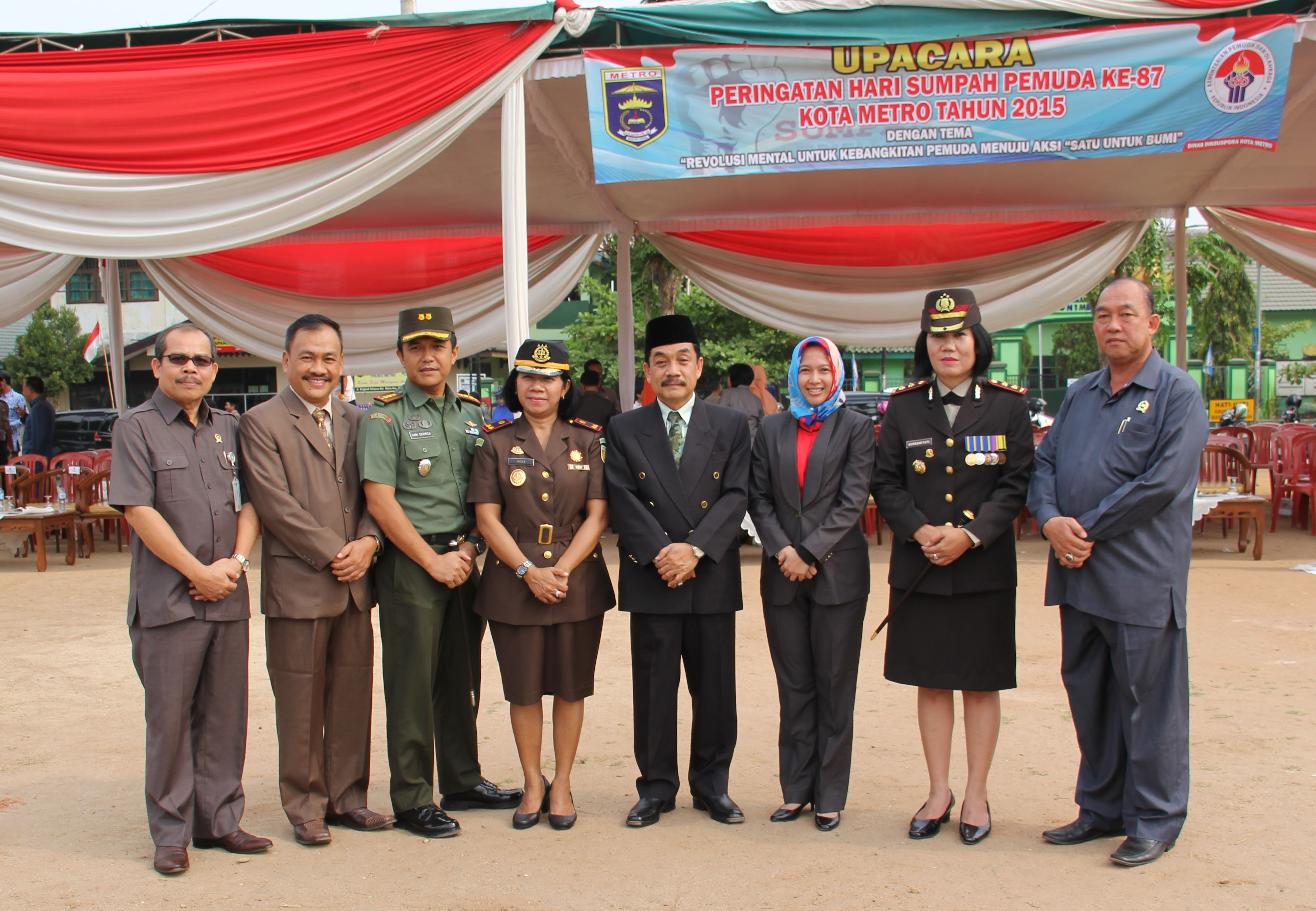 “Melalui Revolusi Mental Pemuda kita berharap lahir generasi muda Indonesia yang tangguh, berkarakter, mandiri dan rela berjuang untuk kepentingan bangsa dan negaranya, rela berkorban menanggalkan ego sukunya, ego agamanya, ego kedaerahannya, ego kelompoknya dan ego pribadinya demi kepentingan yang lebih besar yaitu untuk Negara Indonesia, seperti yang pernah dilakukan oleh para pemuda pendahulu kita”, sambutan dari Menteri Pemuda dan Olahraga Republik Indonesia Imam Nahrawi yang dibacakan langsung oleh Pj. Walikota Metro Ir. Achmad Chrisna Putra