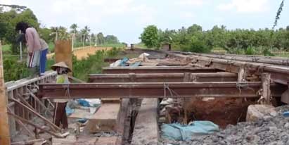 RUBRIK, LAMPUNG TENGAH - Perbaikan perlintasan rel kereta api di wilayah Stasiun Selusuban Kabupaten Lampung Tengah yang sempat anjok akibat longsor beberapa waktu lalu terus