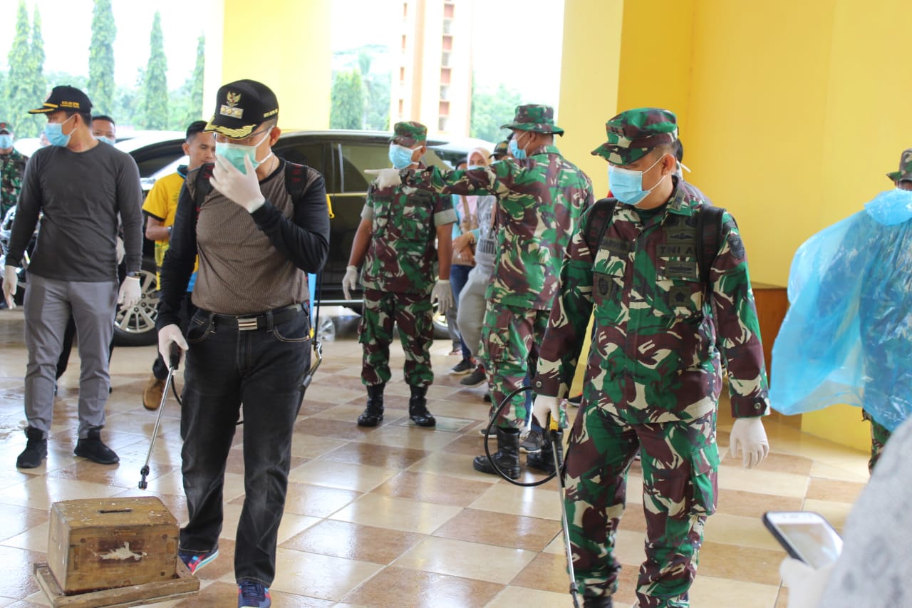 Cegah Corona, Baguna Semprot Dua Obyek Vital di Metro