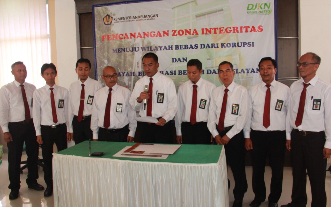 METRO - Pencanangan Pembangunan Zona lntegritas Menuju Wilayah Bebas dari Korupsi (WBK) dan Wilayah Birokrasi Bersih dan Melayani (WBBM) Pada KPKNL Metro sukses dilakukan.