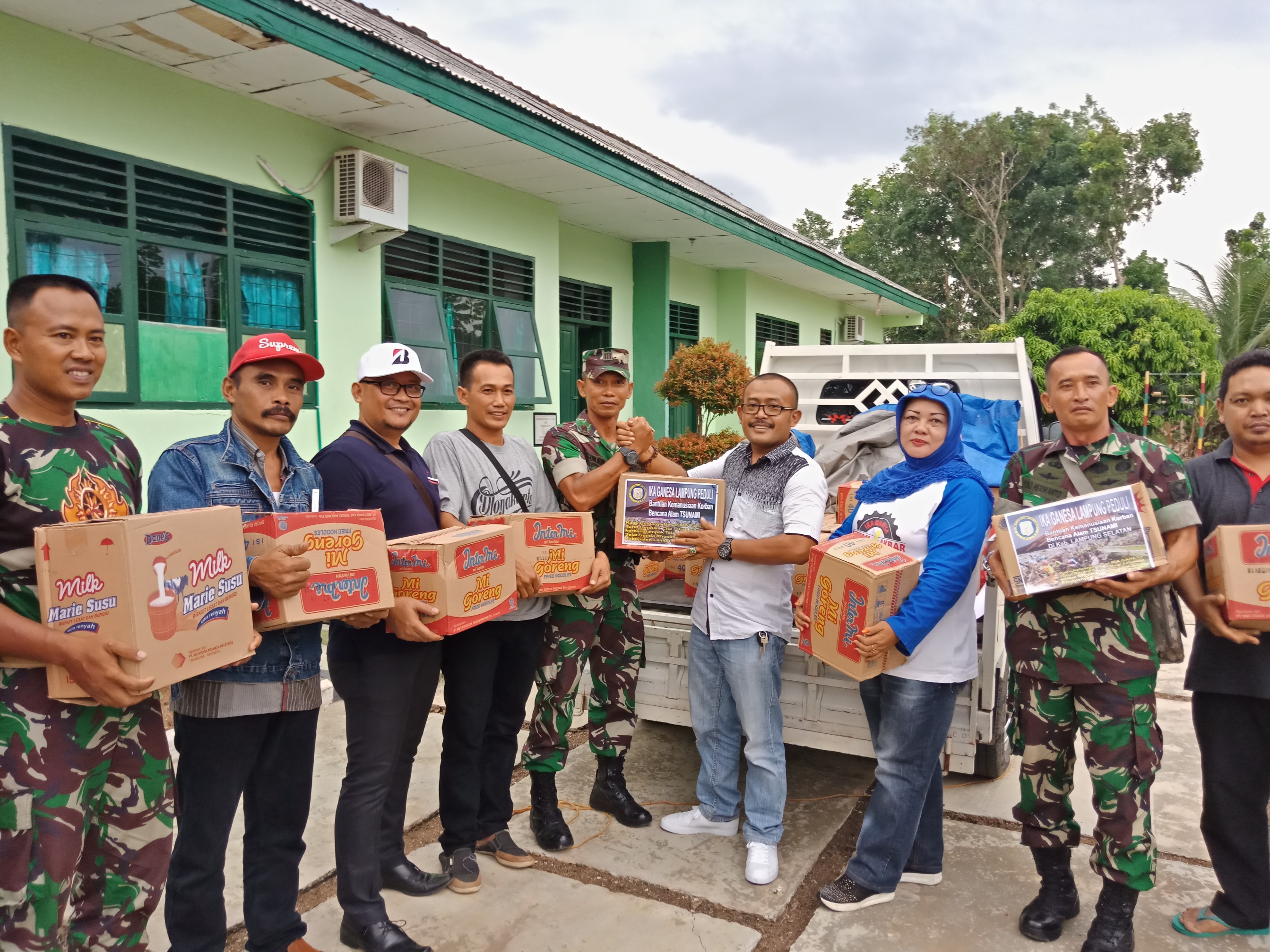RUBRIK, LAMSEL - Ikatan Keluarga Alumni atau IKA Ghanesa Metro mengirimkan langsung bantuan untuk korban tsunami Selat Sunda ke lokasi terdampak tsunami, di Kabupaten