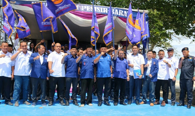 RUBRIK, PESISIR BARAT - Ketua Dewan Pimpinan Wilayah (DPW) NasDem Lampung Mustafa melantik Bupati Pesisir Barat (Pesibar) Agus Istiqlal sebagai Ketua DPD NasDem Pesibar di