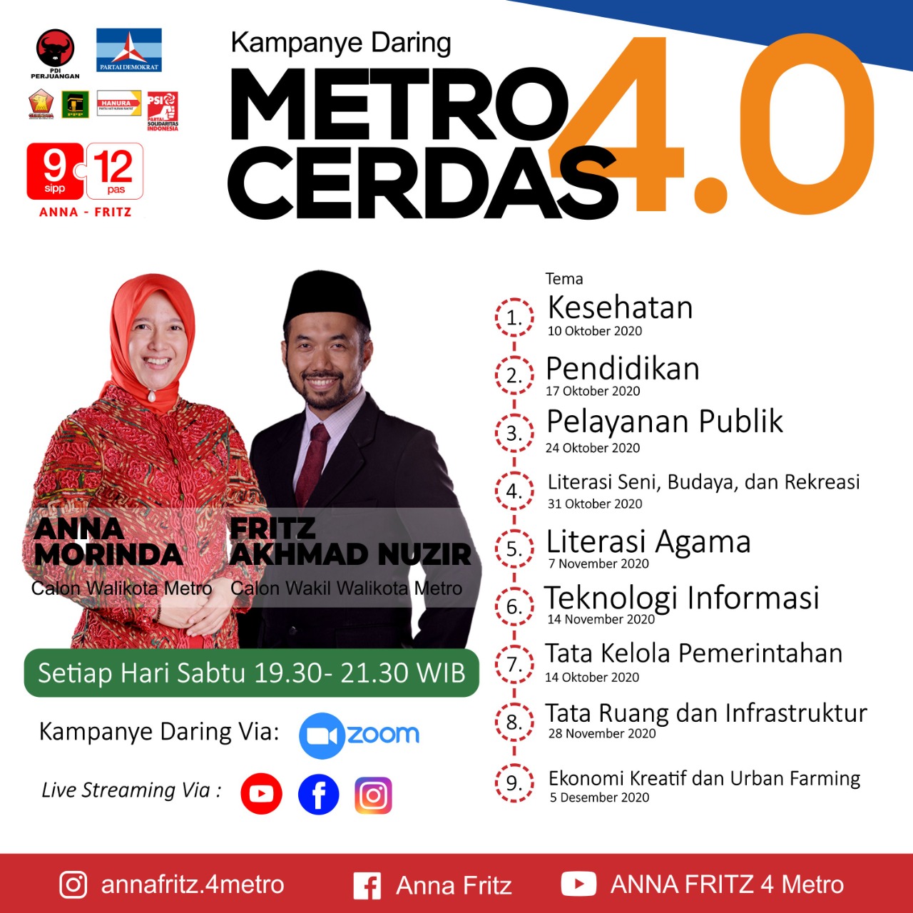 RUBRIK, METRO - Pasangan Calon Wali dan Wakil Walikota Metro Anna Morinda - Fritz Akhmad Nuzir dijawalkan kembali menggelar Kampanye Daring Metro Cerdas 4.0 sesi