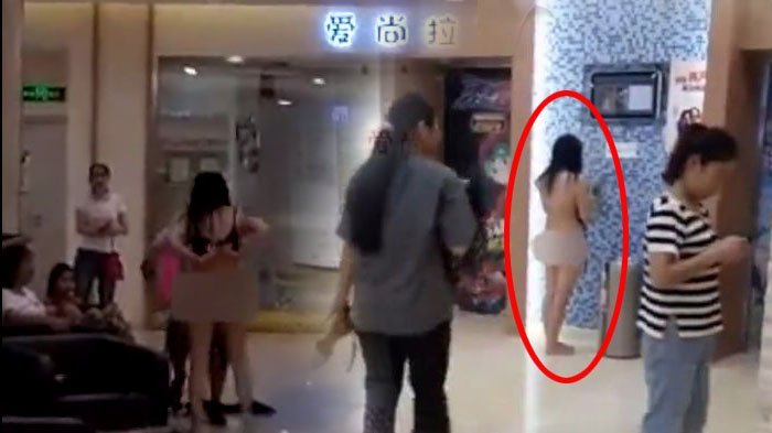 Aksi membuka pakaian itu dilakukan sang wanita di tengah mal dan sontak menjadi bahan tontonan pengunjung mal lainnya.